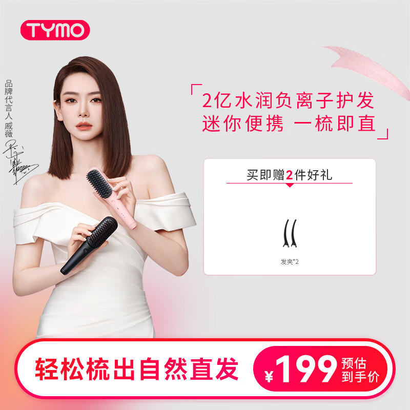 TYMO【戚薇同款】Mini 迷你直发梳负离子护发不伤发两用美发造型梳子护发蓬松拉直价格:199.00元!