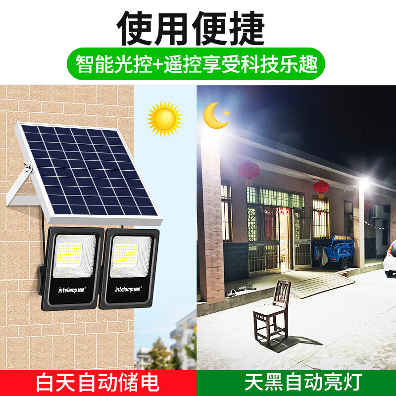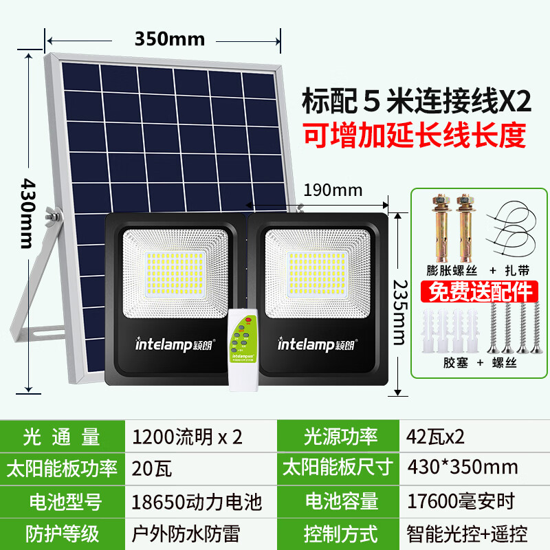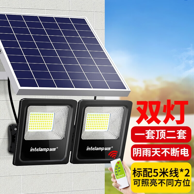 颖朗太阳能投光灯一拖二庭院照明led户外防水新农村大功率室外露营灯价格:398.00元!