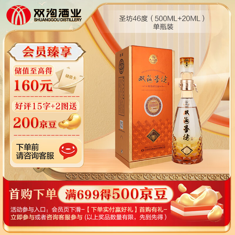双沟 珍宝坊圣坊 46度 (500ml+20ml) 单瓶装 浓香型白酒价格:278.00元!