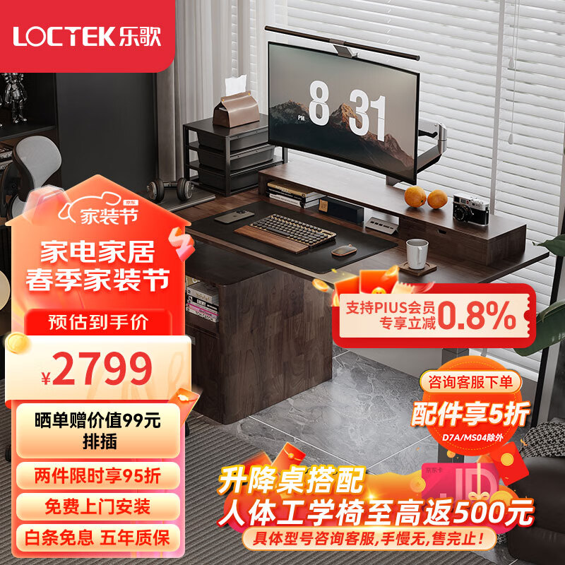 乐歌电动升降桌电脑桌站立办公学习桌写字桌 E5-N/1.8m灰胡桃木色套装价格:2799.00元!