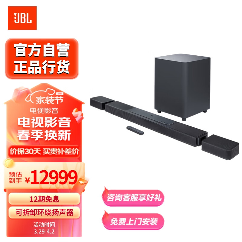 JBL BAR1300X回音壁电视音响 11.1.4杜比全景声家庭影院Soundbar 无线蓝牙低音炮高端家用音箱价格:12999.00元!