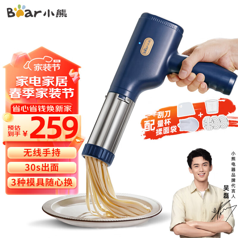 小熊(Bear )面条机家用压面机手持压面枪小型电动自动不锈钢压面条机 YMJ-A01V1价格:259.00元!