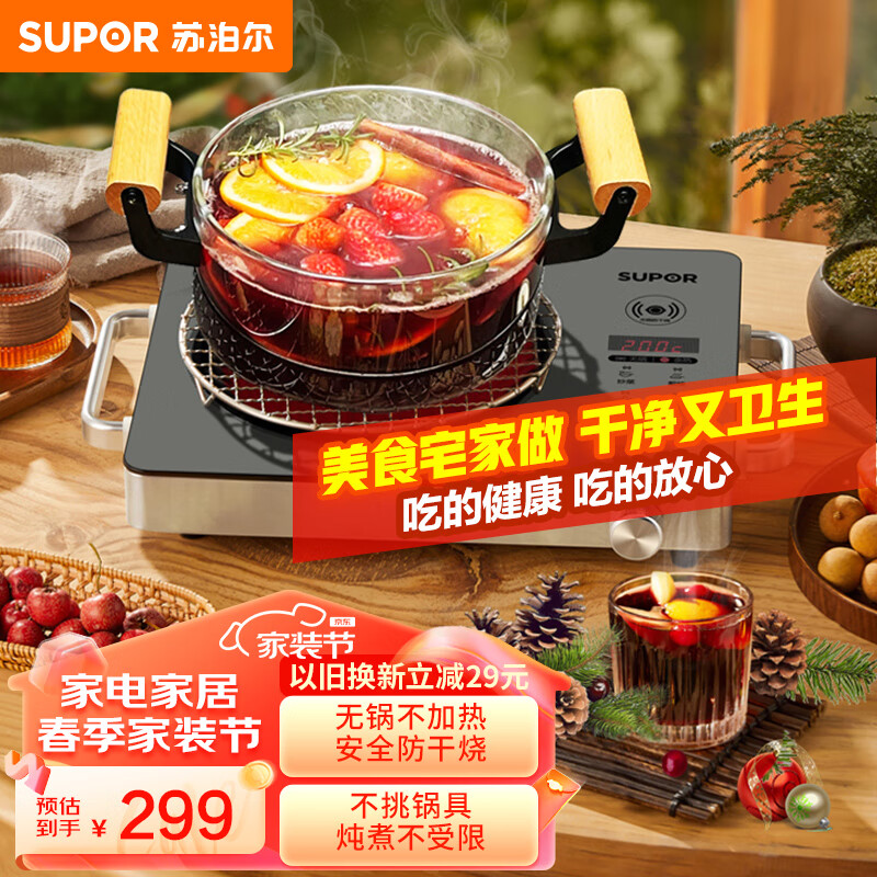 苏泊尔(SUPOR)电陶炉 家用电磁炉 低噪辐射 双环控温 2200W大功率 火锅炉 智能防干烧爆炒炒菜 围炉煮茶C22-CS50价格:299.00元!