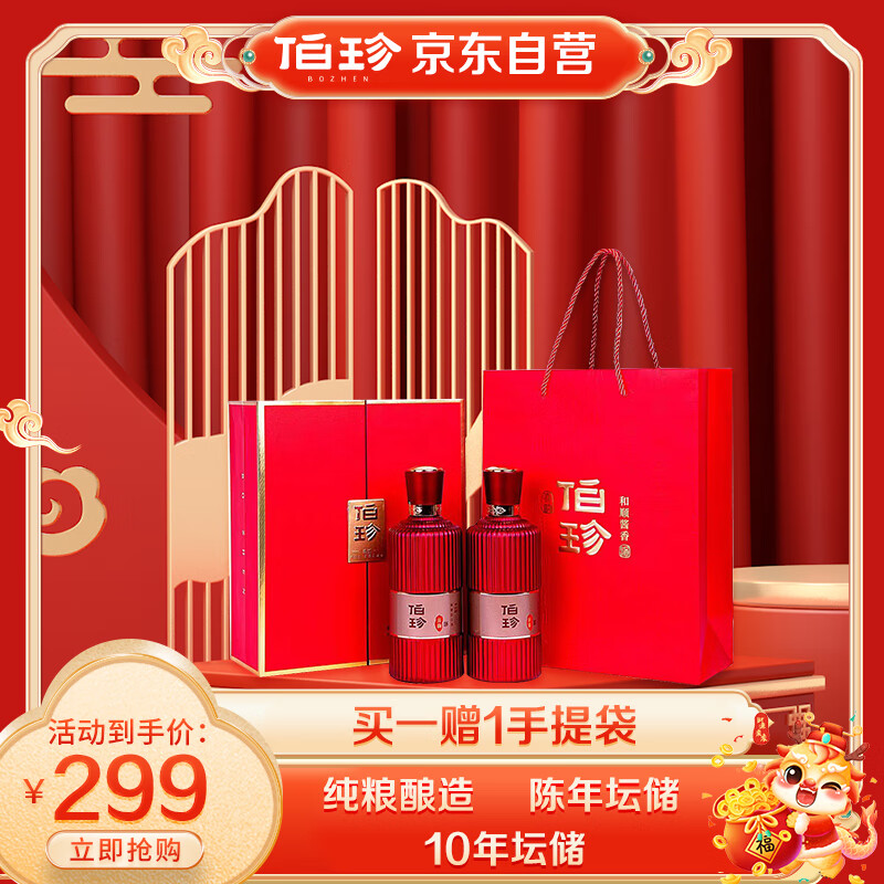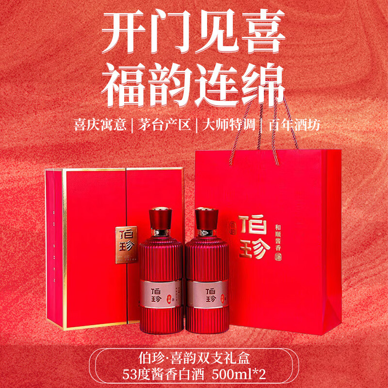 伯珍 喜韵 酱香型白酒 53度 500ml*2瓶 礼盒装 茅台镇产区 纯粮酿造价格:299.00元!