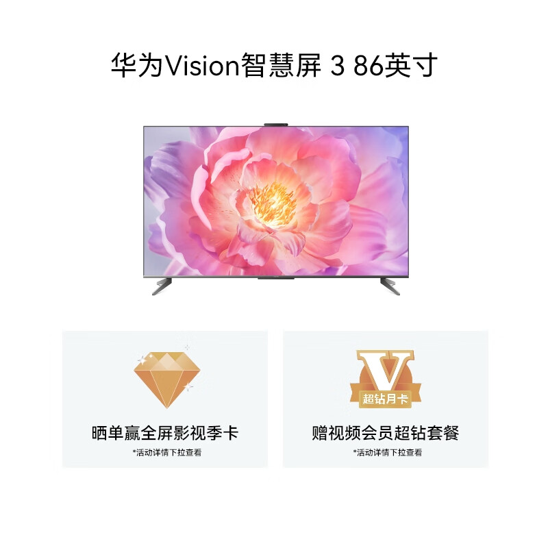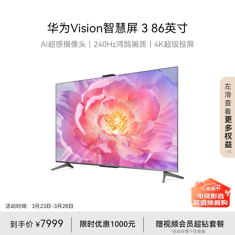 华为Vision智慧屏 3 86英寸 4K超级投屏AI摄像头 240Hz屏超高清液晶超薄护眼电视机85寸HD86QINA价格:7999.00元!