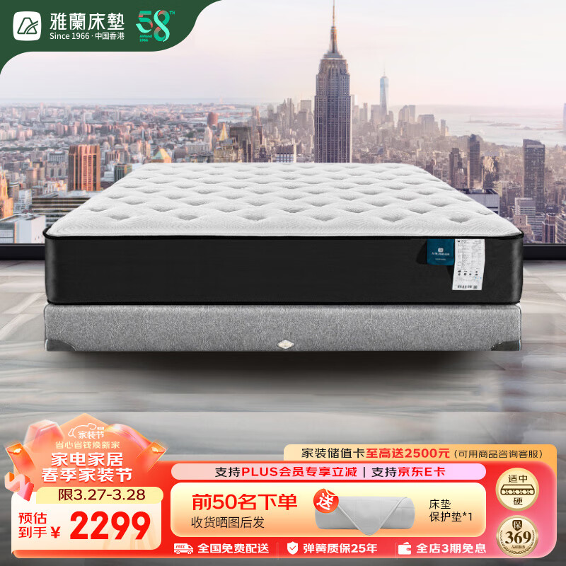 雅兰50周年纪念款 软硬适中独袋弹簧乳胶床垫 蘭朋友舒适2.0 1.5*2米价格:2699.00元!
