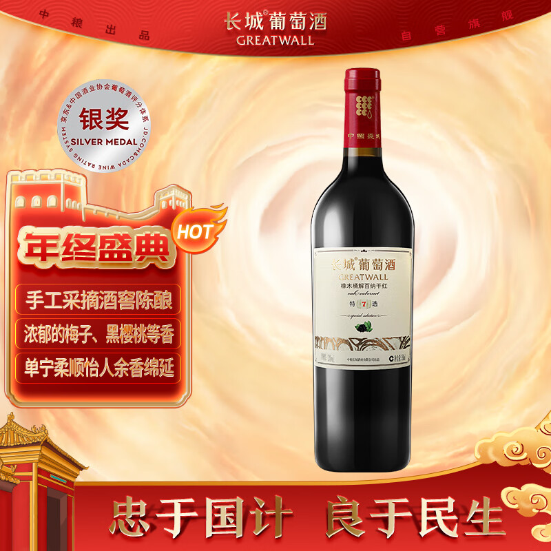 长城 特选7橡木桶解百纳干红葡萄酒 750ml 单瓶装价格:86.50元!