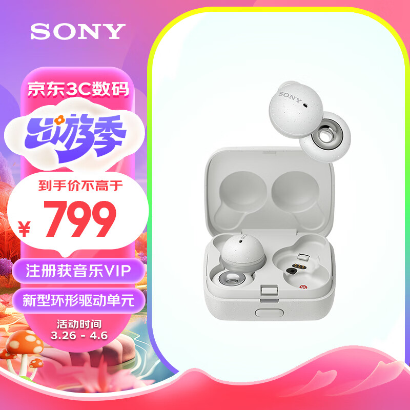 索尼(SONY)linkBuds 真无线 开放式 蓝牙耳机 IPX4防水 环形振膜 高清通话 白色价格:799.00元!
