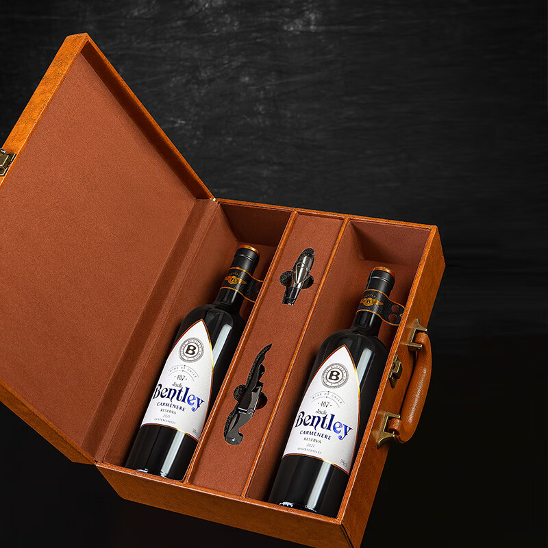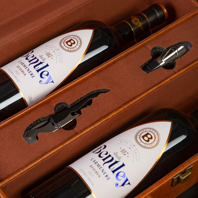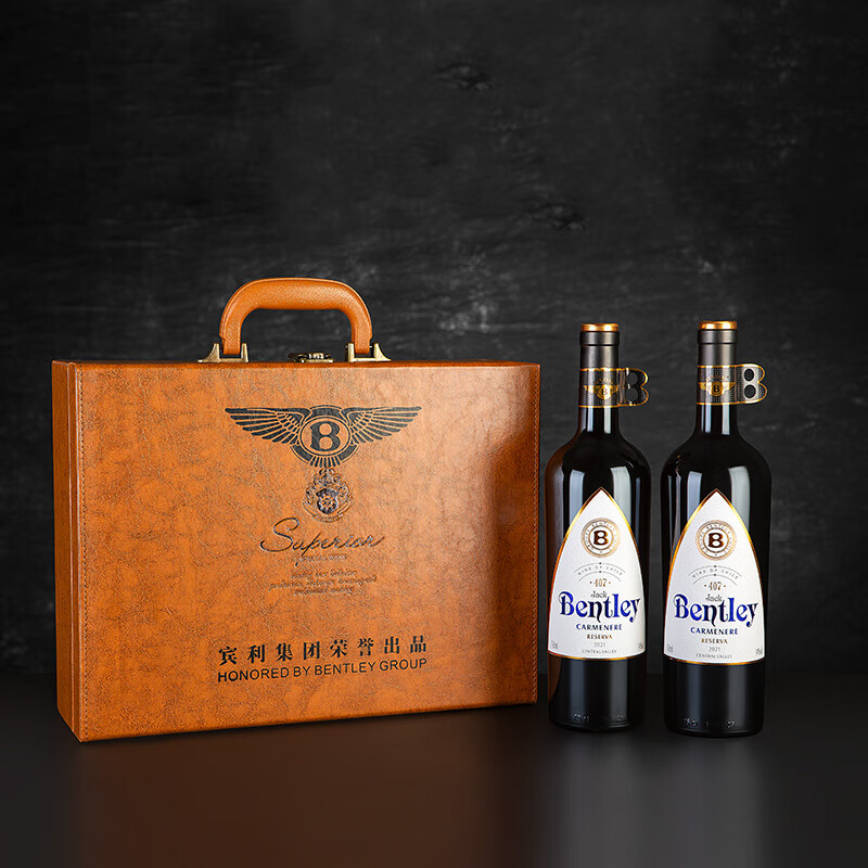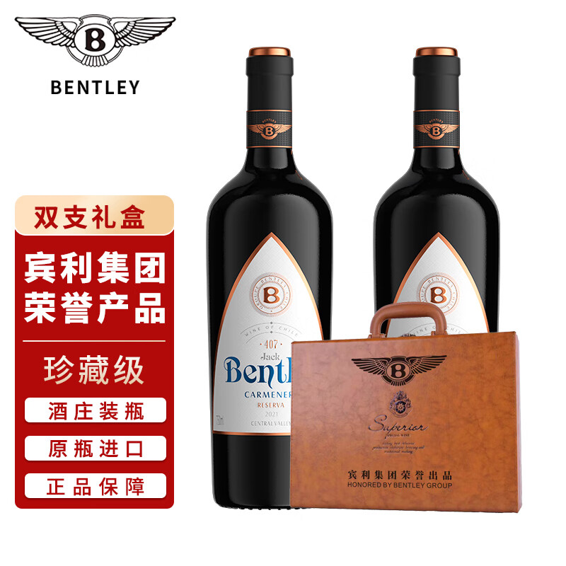 宾利(BENTLEY)智利原瓶进口红酒干红葡萄酒爵卡407珍藏级送礼自饮红酒礼盒双支价格:288.00元!