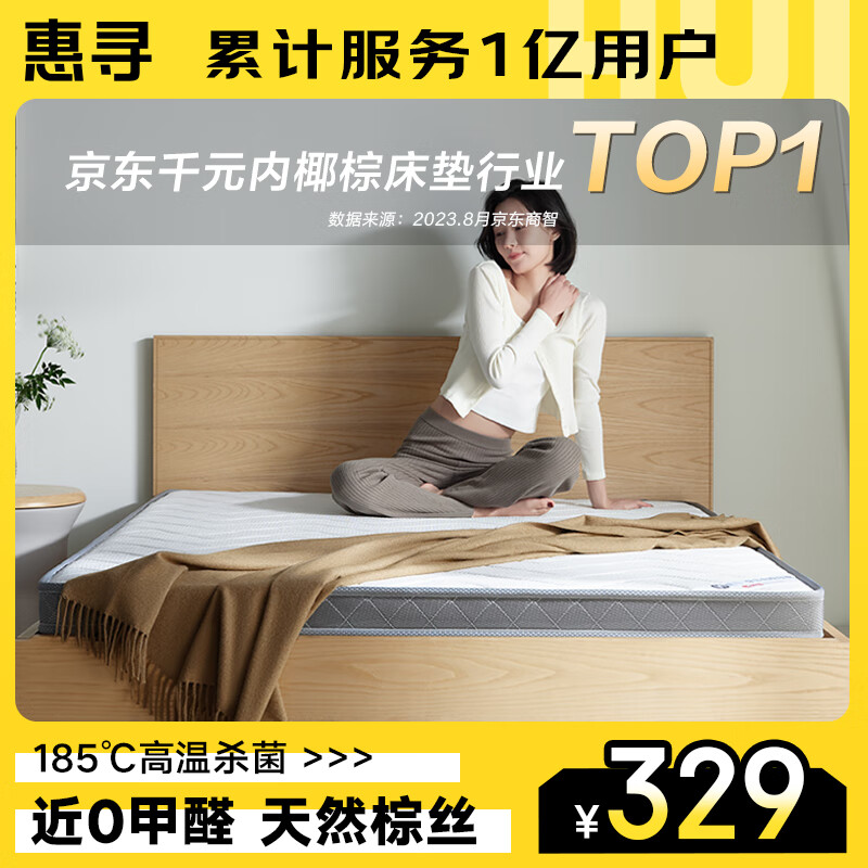 惠寻 京东自有品牌 椰棕床垫硬垫薄床垫偏硬1.2*1.9米10cm厚折叠价格:329.00元!