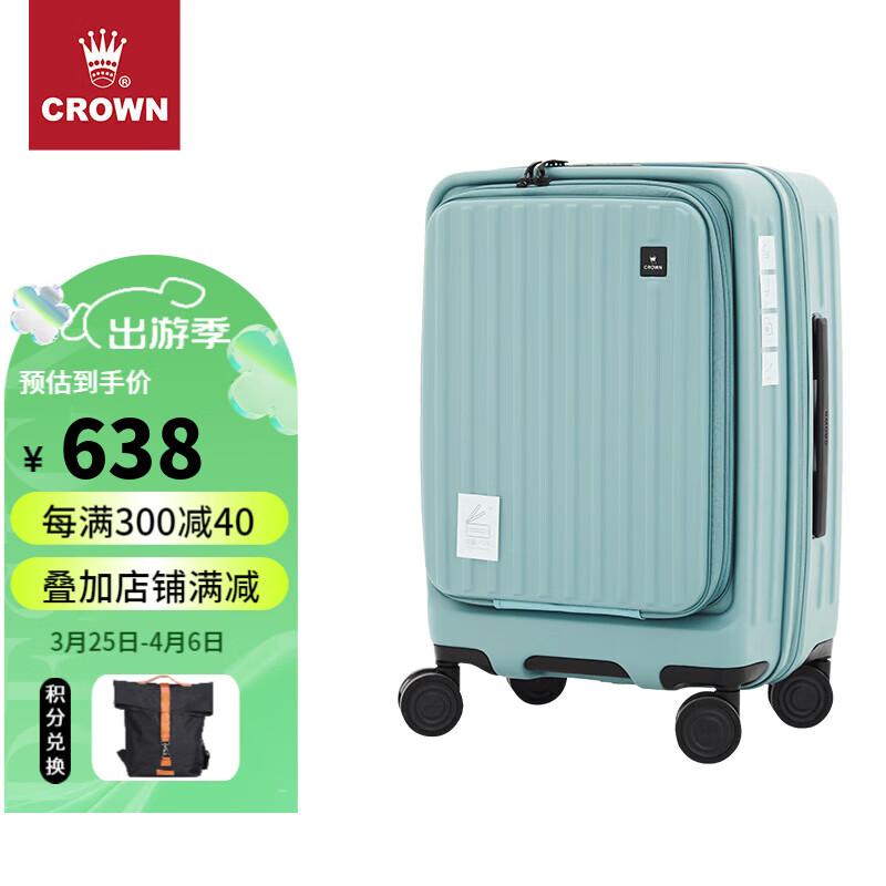 皇冠(CROWN)侧开盖行李箱时尚扩展层加大容量拉杆箱旅行箱5020-25-青玉色价格:999.00元!