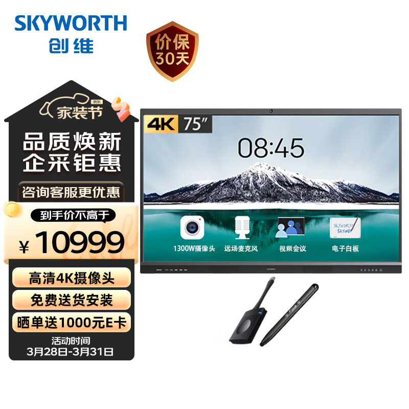 创维(Skyworth)会议平板75英寸智能触摸一体机 电子白板无线传屏投影 视频电视75MBK7带摄像头麦克风【商用显示】价格:10999.00元!
