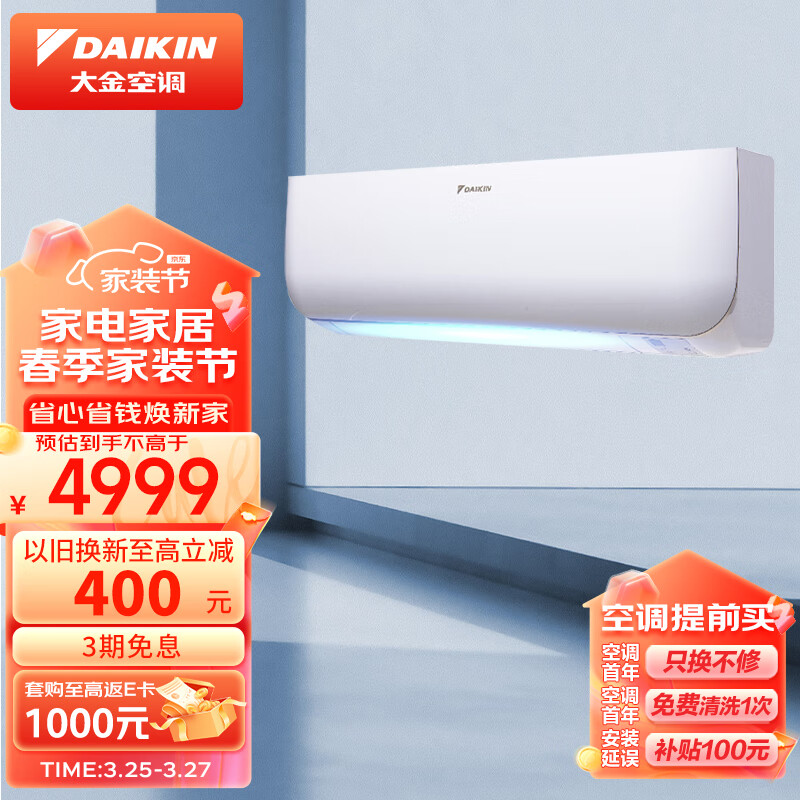 大金空调 14-19㎡适用 新二级能效 大1.5匹 变频 冷暖 家用 壁挂式 以旧换新 FTXB236WCLW价格:4999.00元!