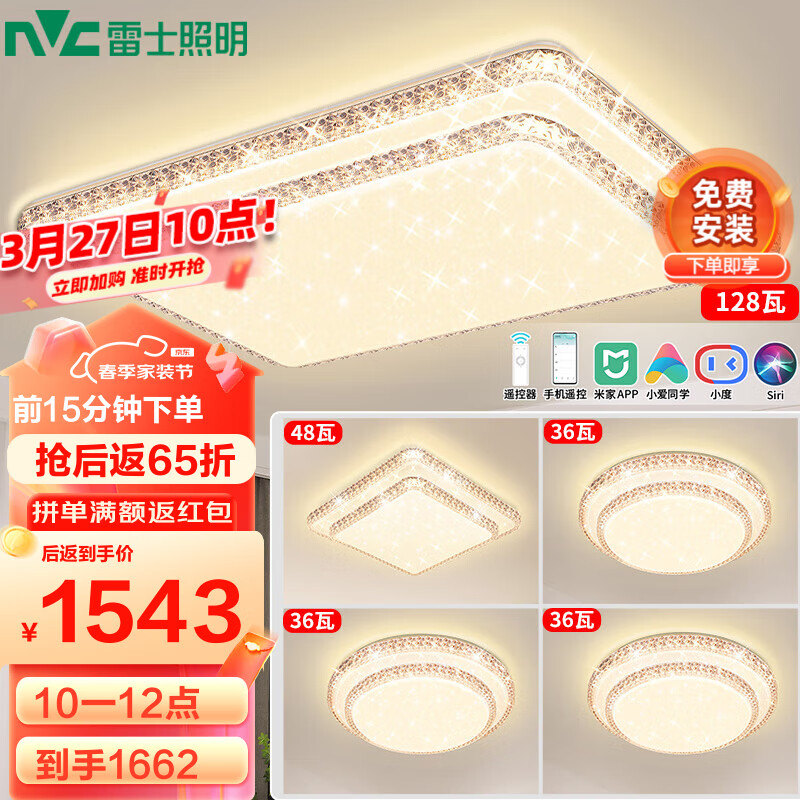 雷士(NVC)LED传统吸顶灯 现代风格客厅餐厅卧室灯具 AI智控满天星灯饰价格:2373.00元!