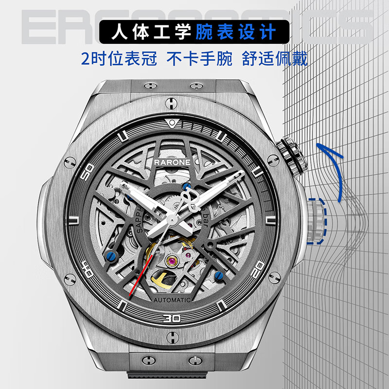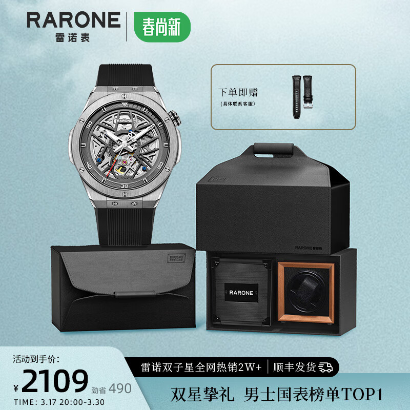 雷诺(RARONE)手表 解构派双子星RebelX男士机械男表腕表 礼盒装价格:2389.00元!