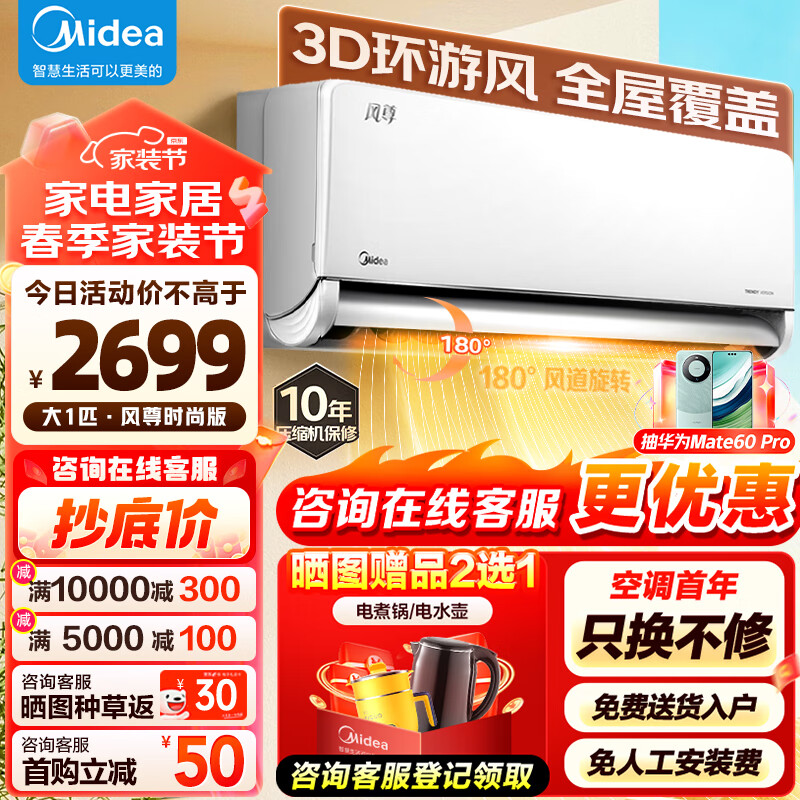 美的(Midea)空调大1匹挂机 风尊时尚版 新一级能效 变频冷暖 节能省电 壁挂式 KFR-26GW/N8MXC1 卧室书房空调价格:2699.00元!