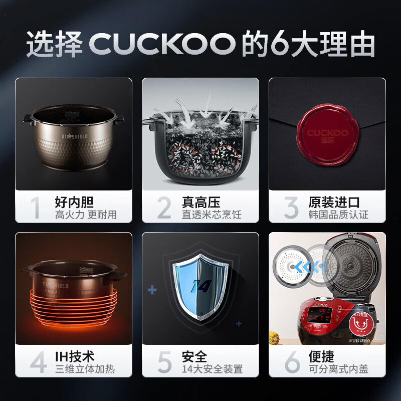 福库(CUCKOO)电饭煲韩国原装进口3-4个人家用小型电饭煲3升IH加热智能预约中韩双语音不粘内胆高多功能饭煲 CRP-HV0665SR(3L 1-4人份)价格:2499.00元!