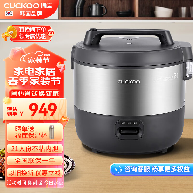 福库(CUCKOO)韩国品牌商用大容量电饭煲不糊底不粘锅 学校食堂饭店餐厅大电饭锅10L21人份CR-2110B价格:949.00元!