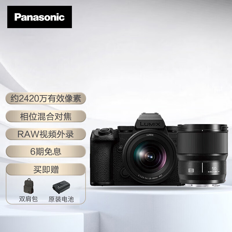 松下S5M2XWGK 全画幅微单相机 20-60mm+50mm镜头 Panasonic数码相机 约2420万有效像素 相位混合对焦价格:17198.00元!