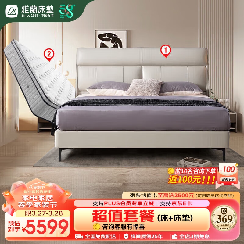 雅兰简约风皮床双人皮艺床 套餐 伯明翰+有度旗舰版 1.5*2米价格:6599.00元!