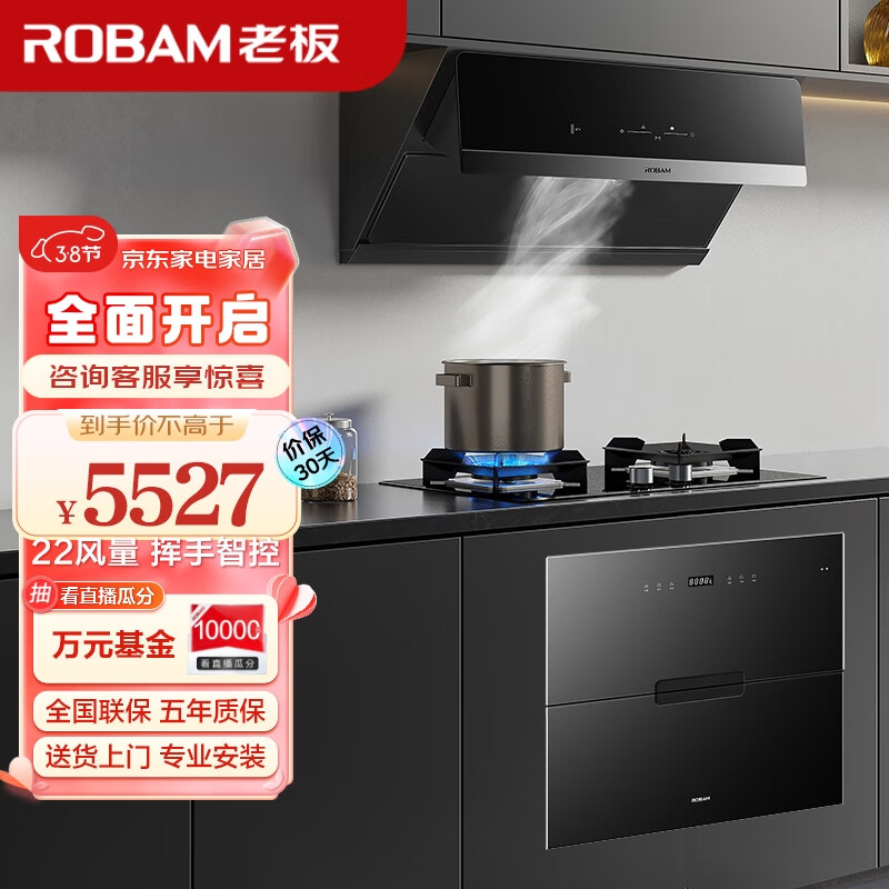老板(Robam)抽油烟机家用变频烟机燃气灶22风量燃气灶具消毒柜烟灶消三件套28D02S+57B2DT+XB710A价格:5527.00元!