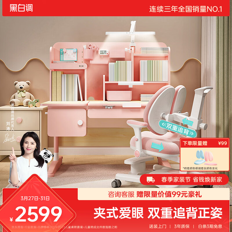 黑白调学习时光C2学习桌【夹式爱眼灯 双重追背】实木儿童学习桌椅套装1.2米粉价格:2699.00元!