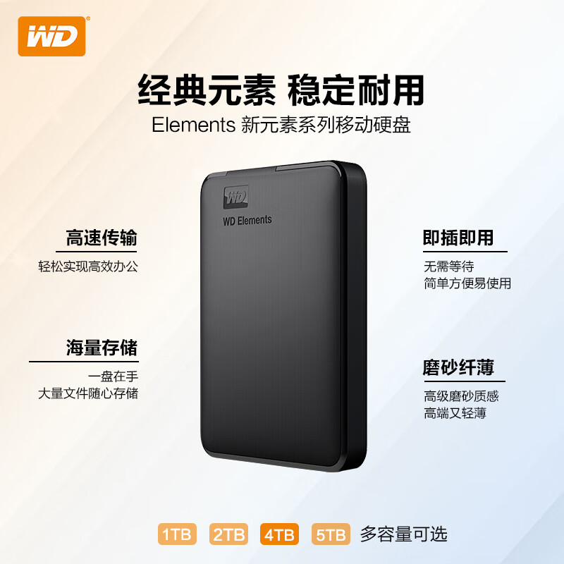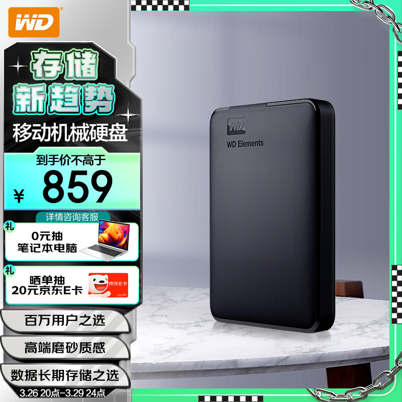 西部数据(WD) 4TB 移动硬盘 USB3.0 Elements 新元素系列2.5英寸 机械硬盘 外置存储 手机笔记本电脑外接价格:859.00元!