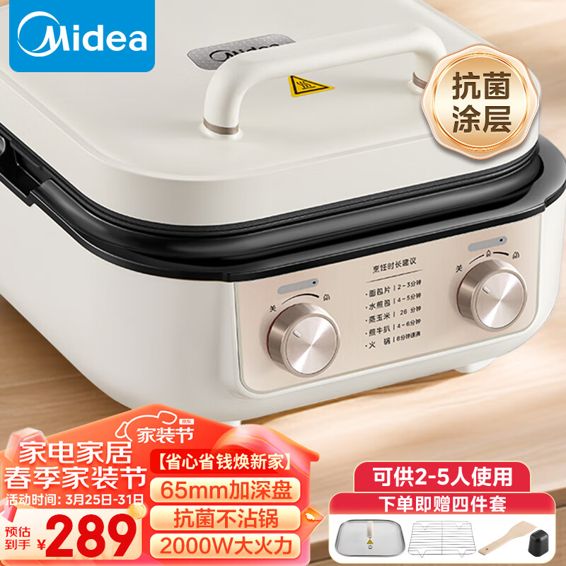 美的(Midea)电饼铛家用下盘可拆多功能蒸锅火锅炒锅 双面加热大火力可调烙饼煎饼烤肉锅加大加深电饼档2626S价格:289.00元!