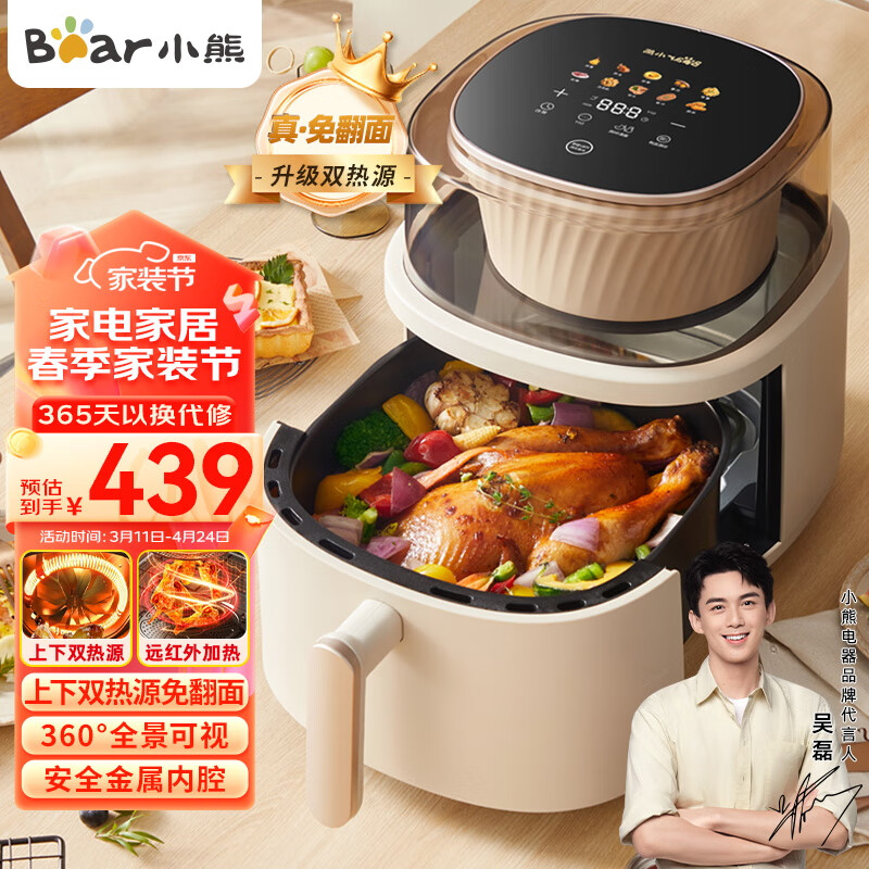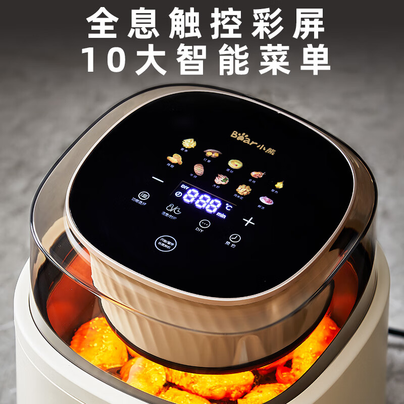 小熊(Bear)空气炸锅6升可视全自动不用翻面家用排行榜多功能低脂微蒸汽嫩烤智能菜单触控上下双热源QZG-P18V2价格:439.00元!