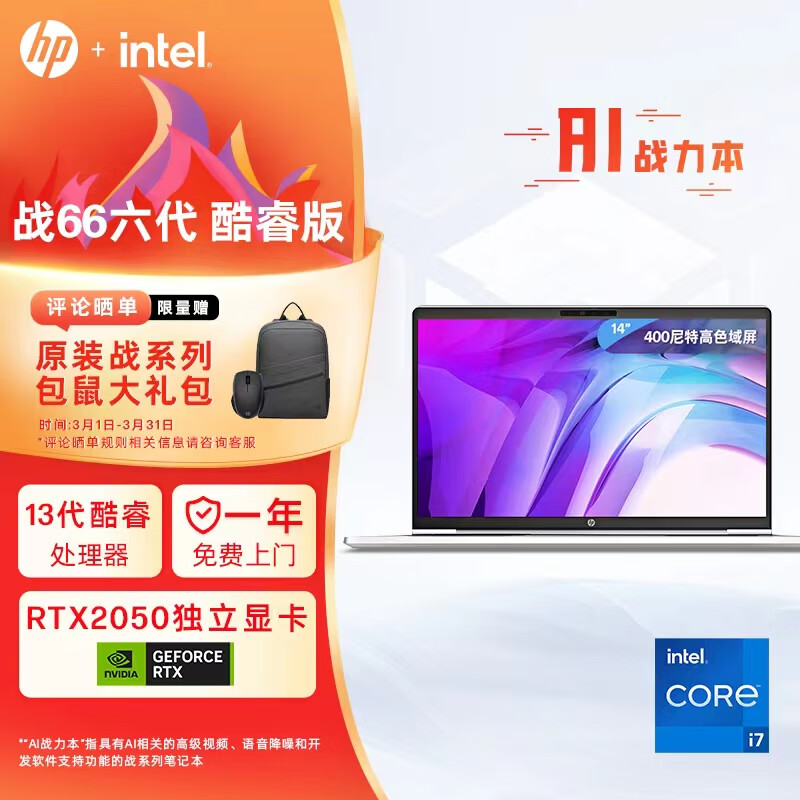 惠普(HP)战66六代酷睿14英寸轻薄笔记本电脑(英特尔13代高性能i7 32G 1T RTX2050高色域低功耗 AI一年上门)价格:6299.00元!
