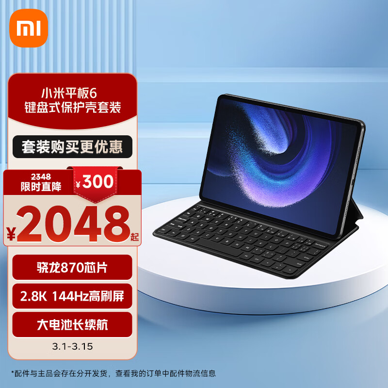 小米平板6 11英寸 骁龙870 144Hz 2.8K 6+128GB 会议移动办公娱乐平板电脑金色【键盘式保护壳套装】价格:2048.00元!