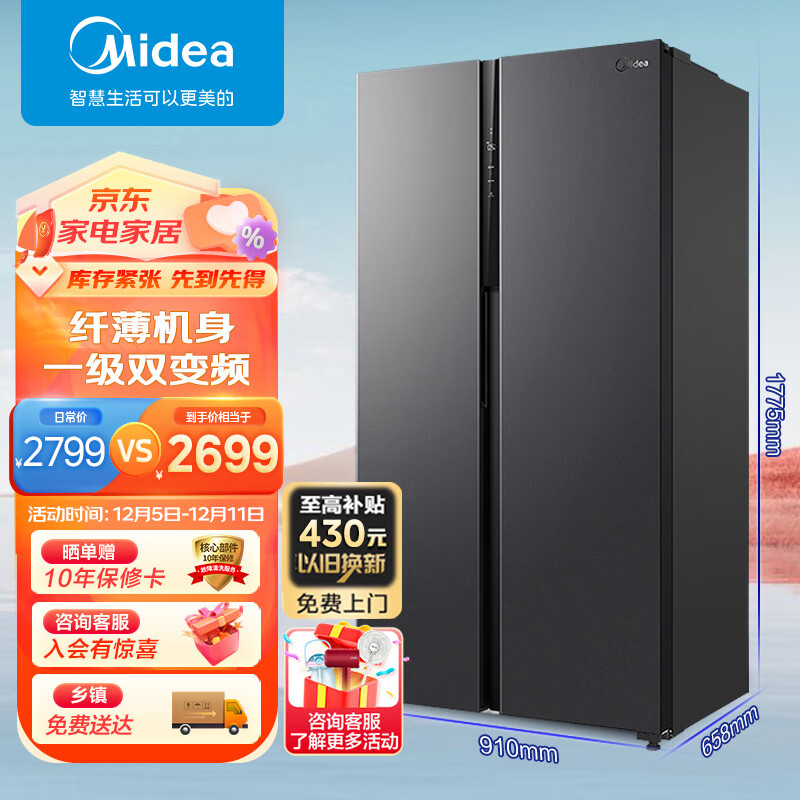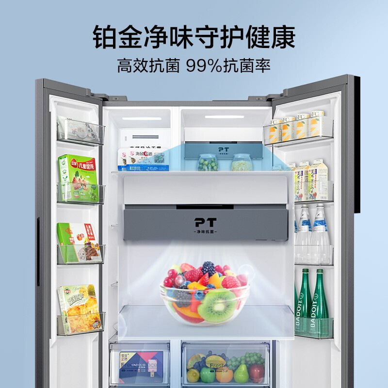 美的(Midea)550升变频一级能效对开双门大容量存储家用冰箱智能家电风冷无霜BCD-550WKPZM(E)价格:2799.00元!