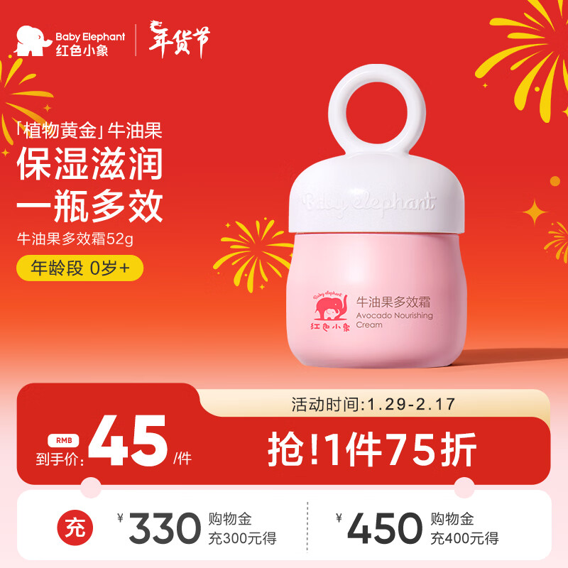 红色小象牛油果多效霜52g 儿童宝宝面霜乳液婴儿护肤润肤乳露擦脸霜洗护价格:60.00元!