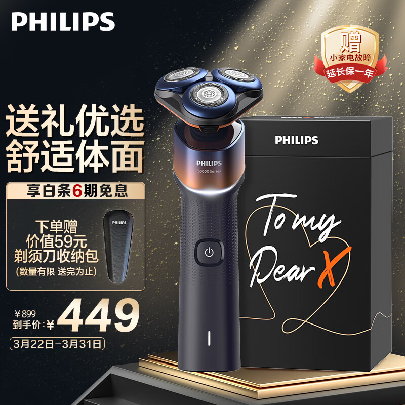飞利浦(PHILIPS)电动剃须刀5X 活力橙告白礼盒 SkinEase智能感应肌能舒缓科技刮胡刀 生日礼物 送男友 送老公价格:389.00元!