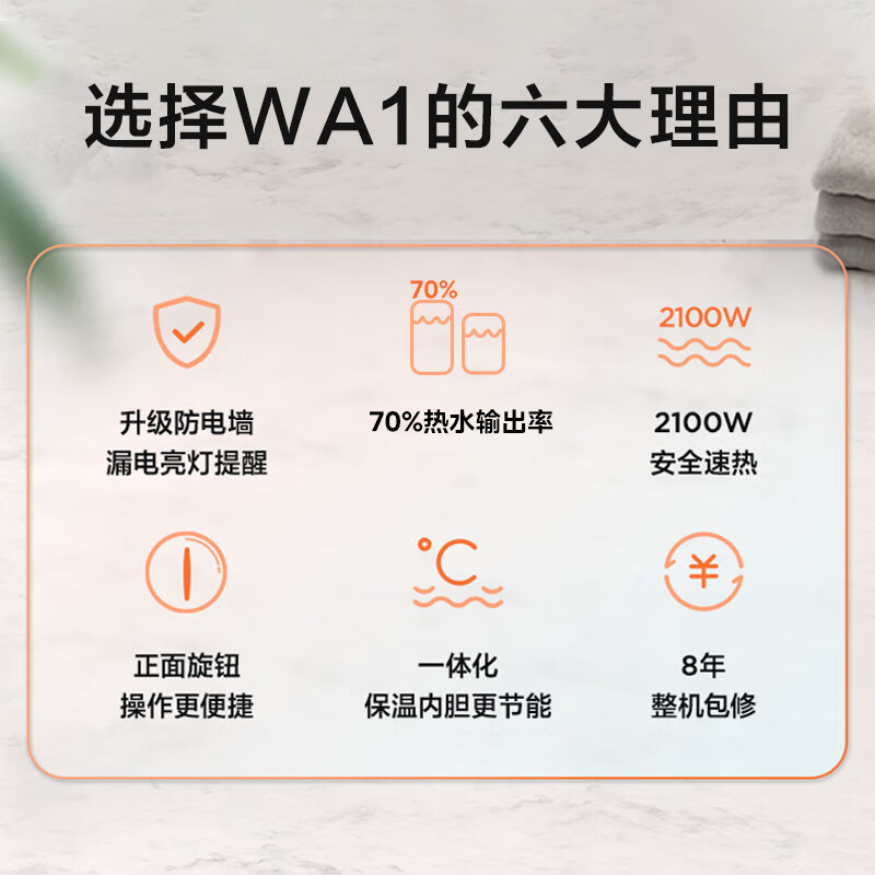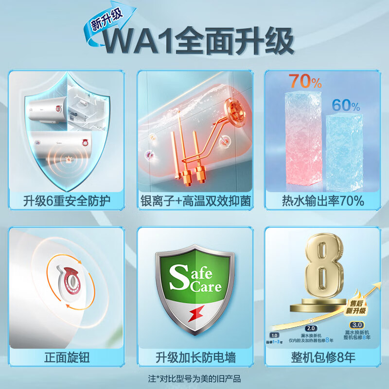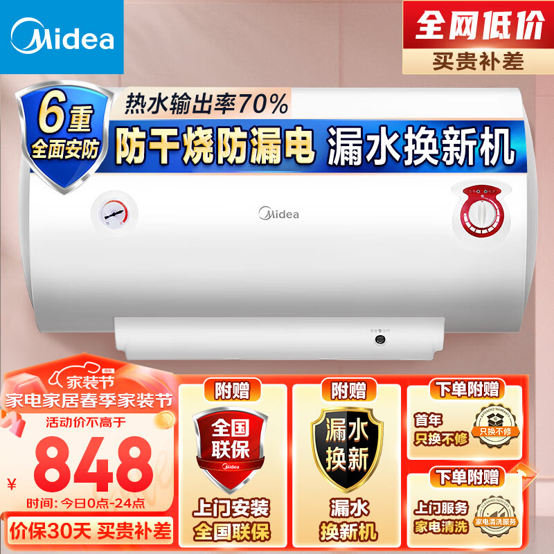 美的(Midea)热水器2100W速热耐用双重杀菌升级加长防电墙全屋漏电预警80升储水式电热水器F80-21WA1价格:848.00元!