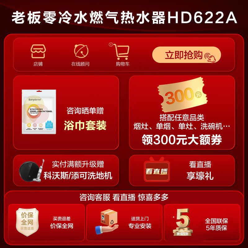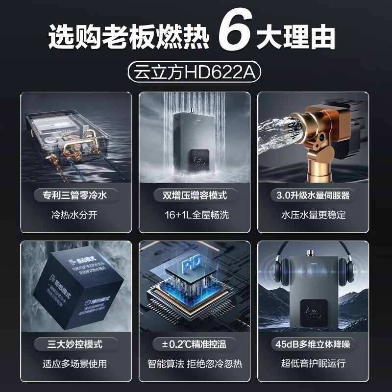 老板(Robam)16升燃气热水器天然气 三管零冷水 双增压增容水量伺服器 下置变频风机家用恒温JSQ31-HD622A-16价格:4399.00元!