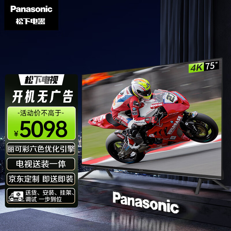 松下(Panasonic)电视LX580 送装一体 即送即装 75英寸 4K屏MEMC AI语音 开机无广告智能电视机 TH-75LX580C价格:5098.00元!