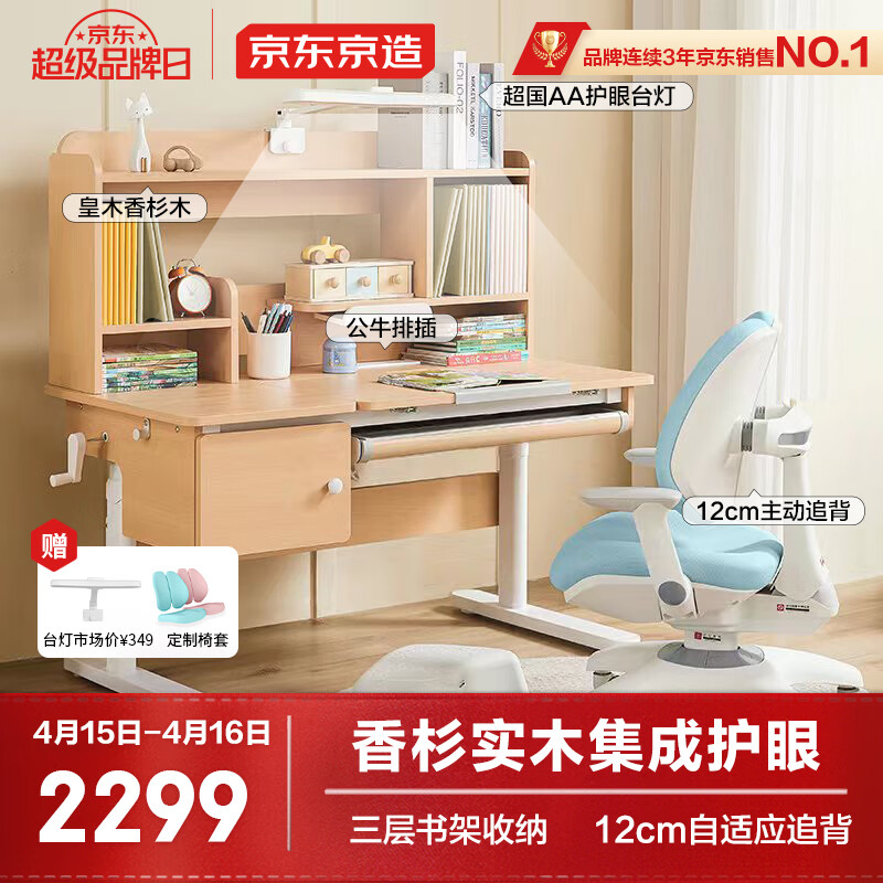 京东京造儿童书桌学习桌椅套装写字桌【香杉实木 AA级台灯】1.2m蓝价格:2499.00元!