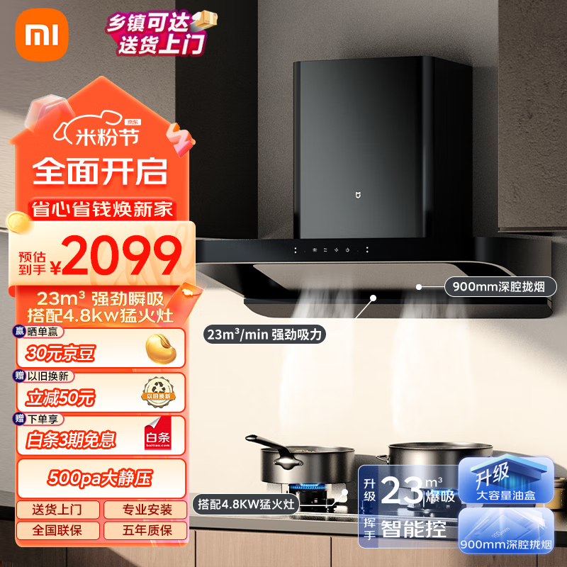 米家小米智能欧式吸油烟机S2顶吸式家用自清洁脱排抽油烟机23立方爆炒大吸力4.8kw液化气烟灶套装MJ01C价格:2099.00元!