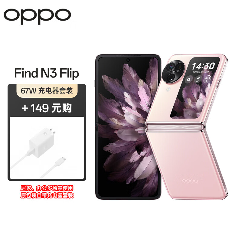 OPPO Find N3 Flip 12GB+256GB 薄雾玫瑰 超光影三摄 专业哈苏人像 5G 小折叠屏手机【67W充电器套装】价格:6148.00元!