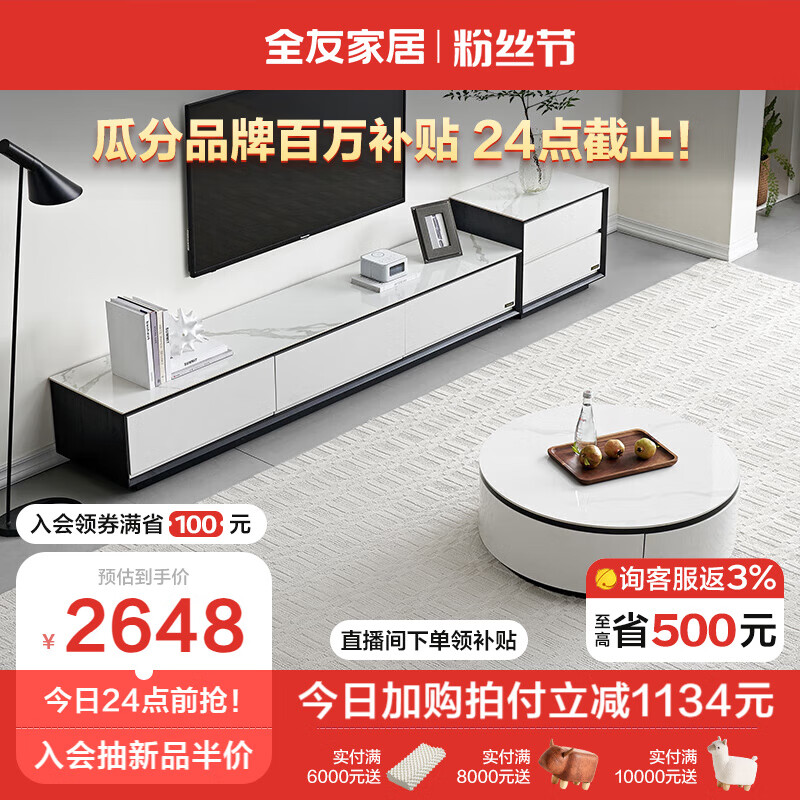 全友家居 岩板茶几电视柜组合现代简约客厅家用圆形茶几边几DW1055A价格:3782.86元!