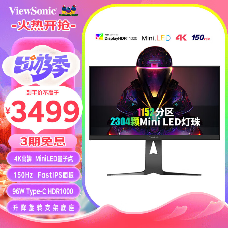 优派27英寸4K MiniLED FastIPS 150Hz Type-C96W HDR1000 爱眼低蓝光 猛擎电竞显示器 VX2781-4K-PRO价格:3699.00元!
