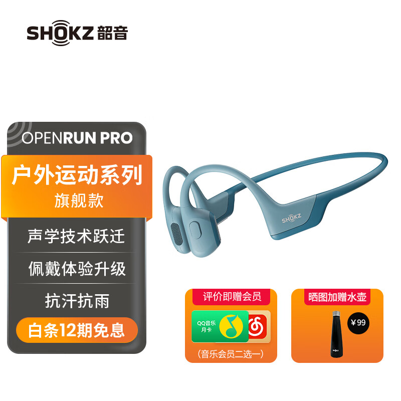 韶音(SHOKZ)OpenRun Pro骨传导蓝牙无线开放式耳机耳麦 不入耳式运动高音质 低频增强S810 牛仔蓝价格:1298.00元!