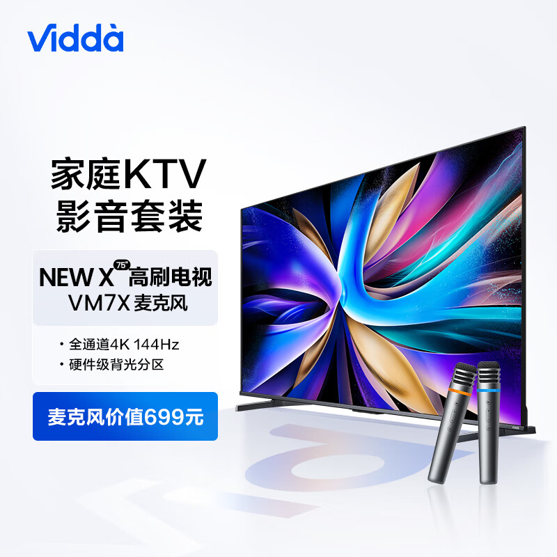 Vidda NEW X75 海信 75英寸 144Hz高刷游戏电视+VM7X-T麦克风套装 K歌电视 家庭KTV 无线降噪话筒价格:4859.00元!