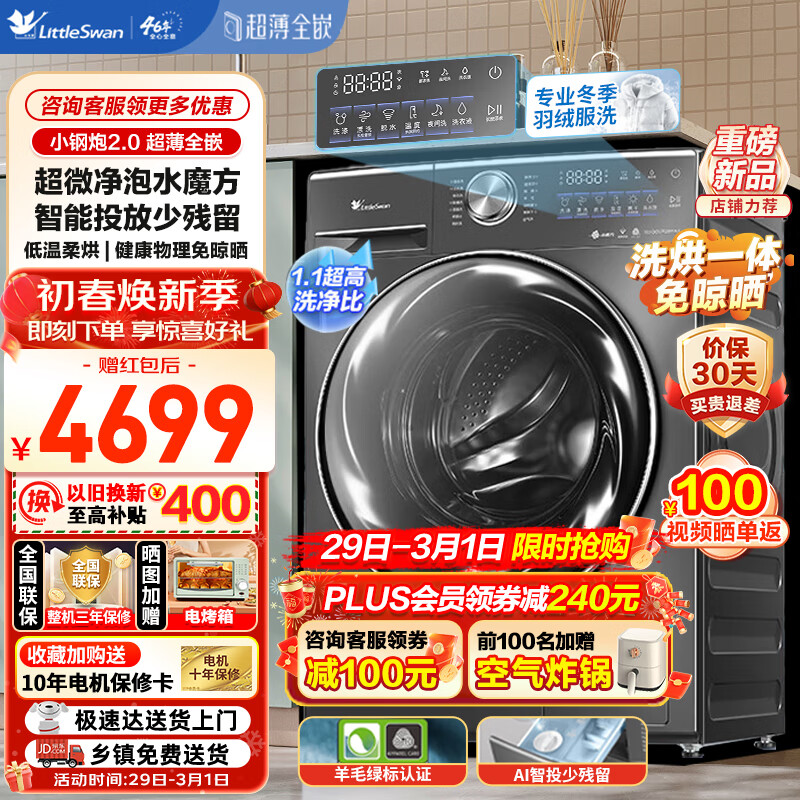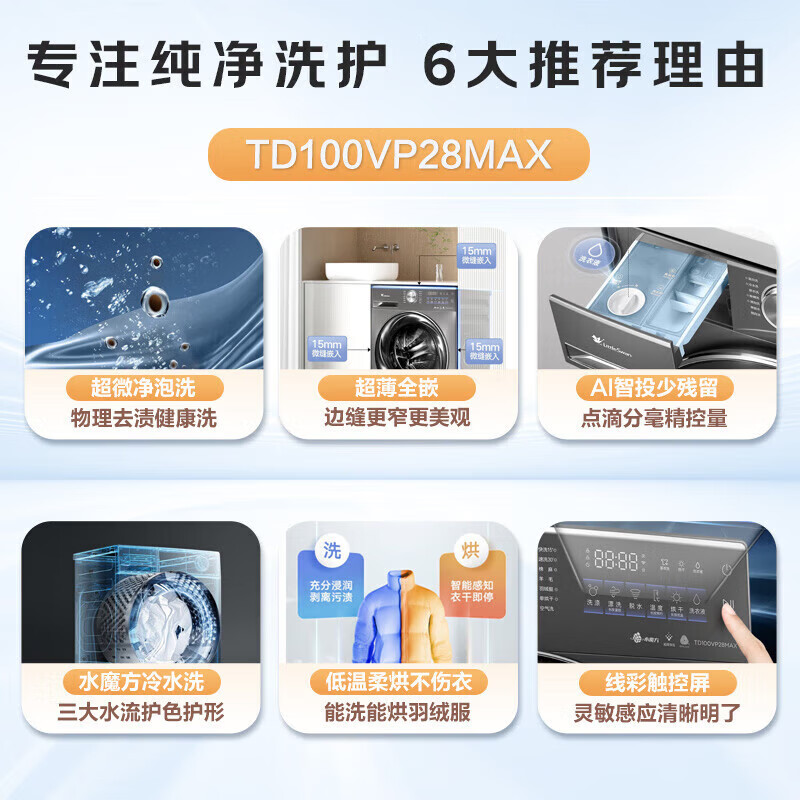 小天鹅(LittleSwan)水魔方滚筒洗衣机带烘干洗烘一体 小钢炮2.0 全自动10KG超薄 智能投放 超微净泡 1.1洗净比VP28价格:4699.00元!