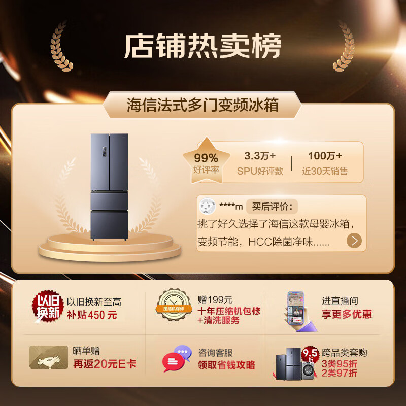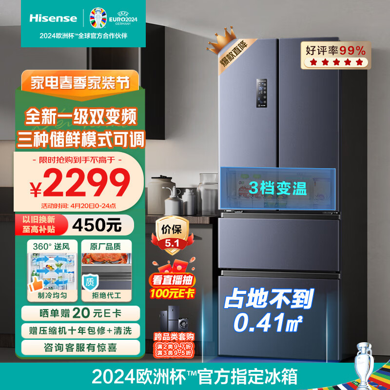 海信(Hisense)四开门冰箱法式328升无霜冰箱一级能效双变频超薄家用电冰箱BCD-328WNK1DPT除菌净味小占地价格:2299.00元!