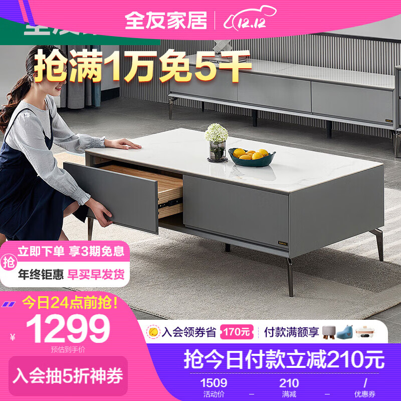 全友家居 茶几意式风格岩板茶几环保板材双向四抽客厅储物家具DW1055H 茶几B(岩板)价格:1509.00元!