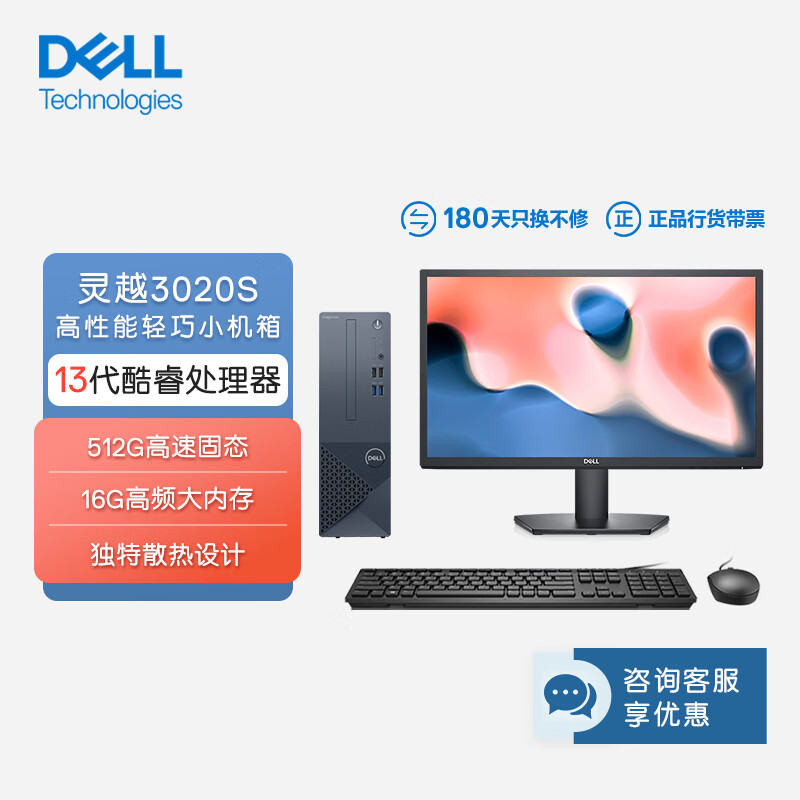 戴尔(DELL)灵越3020S 台式电脑主机 (酷睿13代i7-13700 16G 512GSSD)21.5英寸显示器 高性能CPU价格:5849.00元!