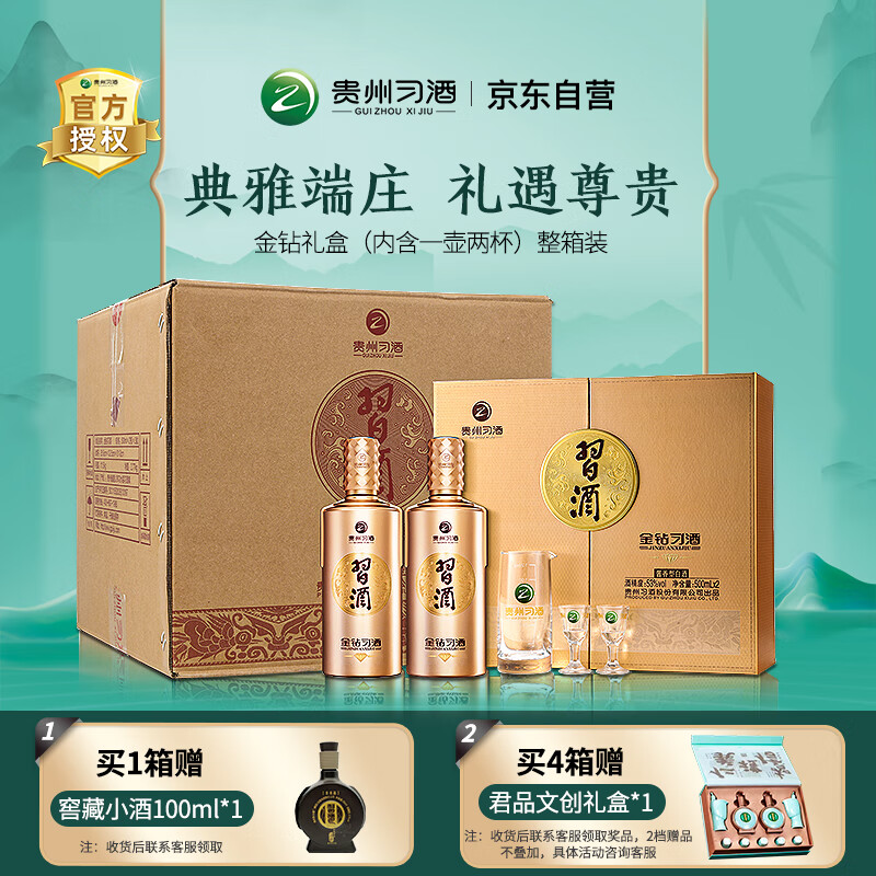 习酒金钻习酒 酱香型白酒 53度500ml*2瓶*3盒 礼盒整箱装 贵州白酒价格:2507.00元!