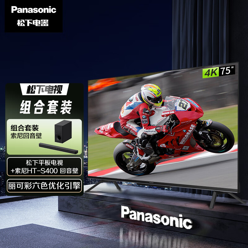 松下(Panasonic)LX580 75英寸 丽可彩4K 屏开机无广告智能电视机 TH-75LX580C+ suoni HT-S400 回音壁价格:6089.00元!